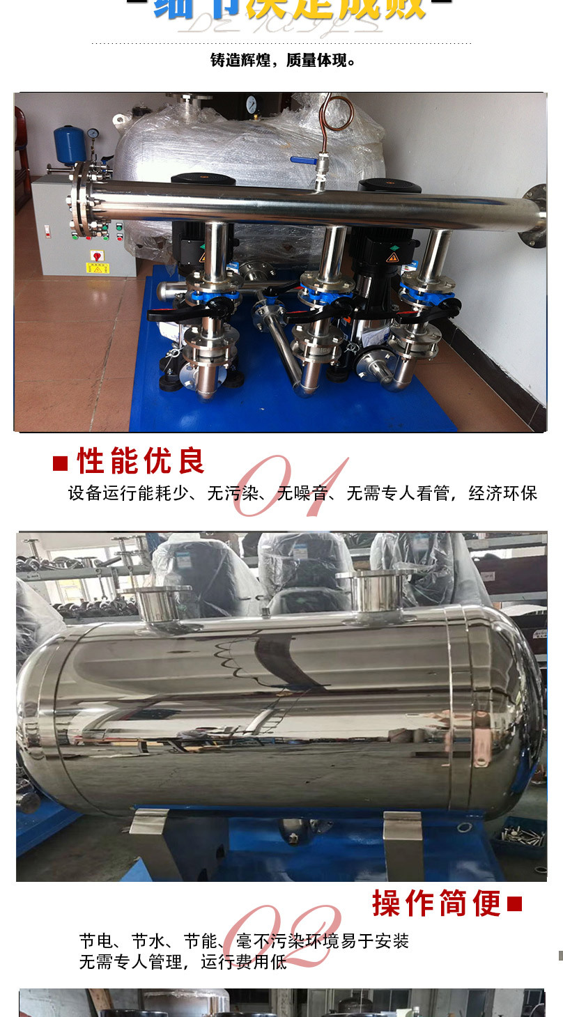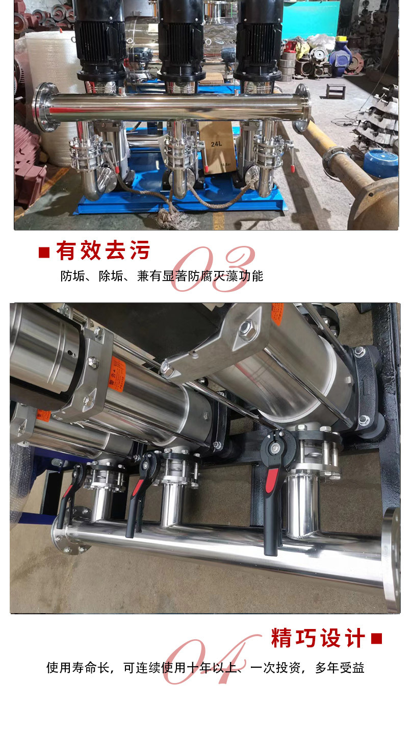 變頻恒壓供水系統(tǒng)以管網(wǎng)水壓(或用戶用水流量)為設(shè)定參數(shù),通過微機控制變頻器的輸出頻率從而自動調(diào)節(jié)水泵電機的轉(zhuǎn)速,實現(xiàn)管網(wǎng)水壓的閉環(huán)調(diào)節(jié)(PID),使供水系統(tǒng)自動恒穩(wěn)于設(shè)定的壓力值:即用水量增加時,頻率升高,水泵轉(zhuǎn)速加快,供水量相應(yīng)增大;用水量減少時,頻率降低,水泵轉(zhuǎn)速減慢,供水量亦相應(yīng)減小,這樣就保證了供水效率用戶對水壓和水量的要求,同時達到了提高供水品質(zhì)和供水效率的目的,“用多少水,供多少水”;采用該設(shè)備不需建造高位水箱,水塔,水質(zhì)無二次污染,是一種理想的現(xiàn)代化建筑供水設(shè)備。