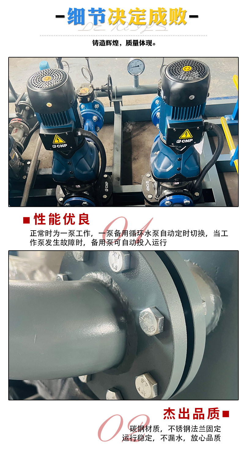 定壓補水裝置是在空調(diào)采暖系統(tǒng)中常用的定壓補水設(shè)備。在諸多商場,廠房和現(xiàn)代化辦公大樓中廣泛采用水或乙二醇作為傳熱介質(zhì)的中央空調(diào)系統(tǒng)或其他系統(tǒng)中能自動穩(wěn)壓補水,較傳統(tǒng)的開式膨脹水箱定壓具有安裝位置靈活,無噪音污染,無氣體污染等優(yōu)點。因此在暖通定壓行業(yè)中得到廣泛應(yīng)用。  &nbs···