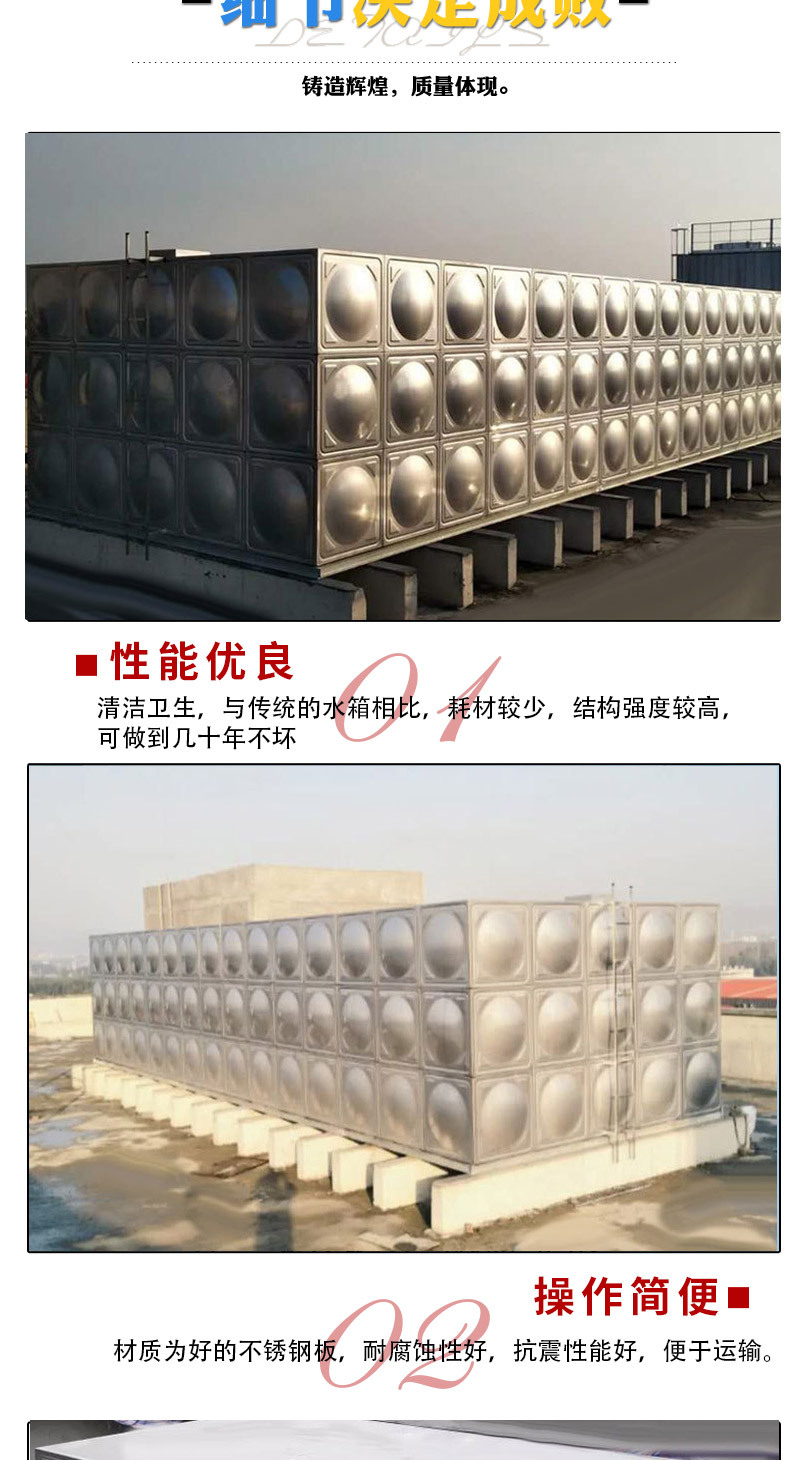 不銹鋼水箱耐腐蝕可有效節(jié)省設(shè)備占地面積,供應(yīng)清潔的生活熱水或工藝熱水。